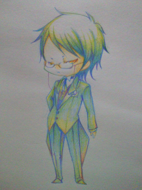 あけまして、おめでとうございますヽ(´▽`)/よい1年でありますように!…………………………ちょと、小話冬コミで、スペースに居る時SHOWに「何か描くものある?」と聞いてみたら「後ろ姿でしか、登場してない執事の顔が気になる!」と、言われてその場でガリガリと描きあげましたー(*´∀`*)私の頭の中にしか正面の姿が無かったので出世しましたね、執事さん。